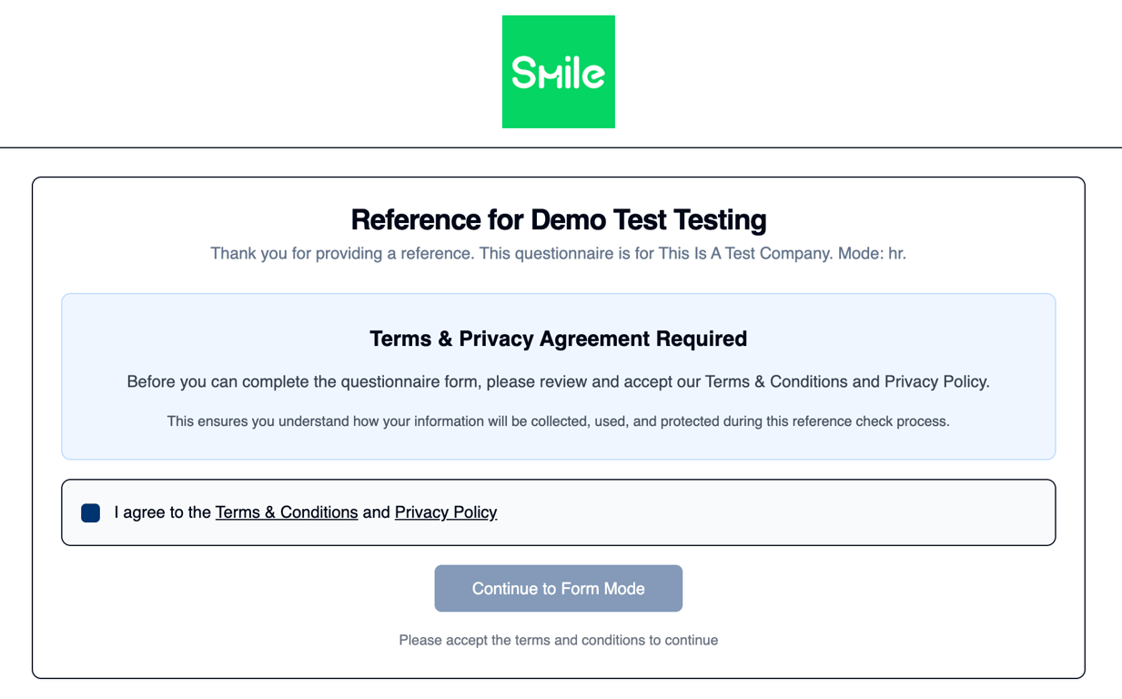 Newly added references will now receive our redesigned questionnaires, purpose-built to be more concise and effortless to answer. This lets your respondents complete references more quickly and easily, boosting completion rates. These changes also lay the foundation for upcoming improvements to the workflow and future features. If you’ve noticed changes to the format or flow, this is all part of preparing Smile Checks to deliver you (and your candidates) even smoother experiences.