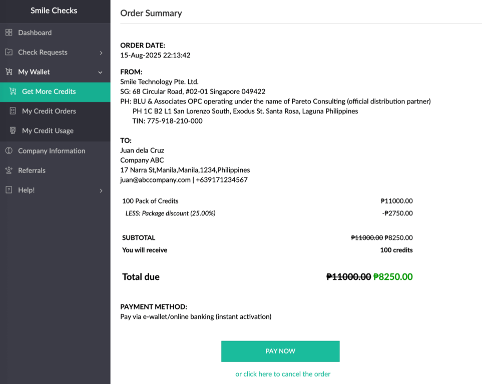 We've also reflected in our portal how our Philippine reseller partner, Pareto Consulting, handles credit orders. This makes compliance and transactions clearer for customers in the Philippines.